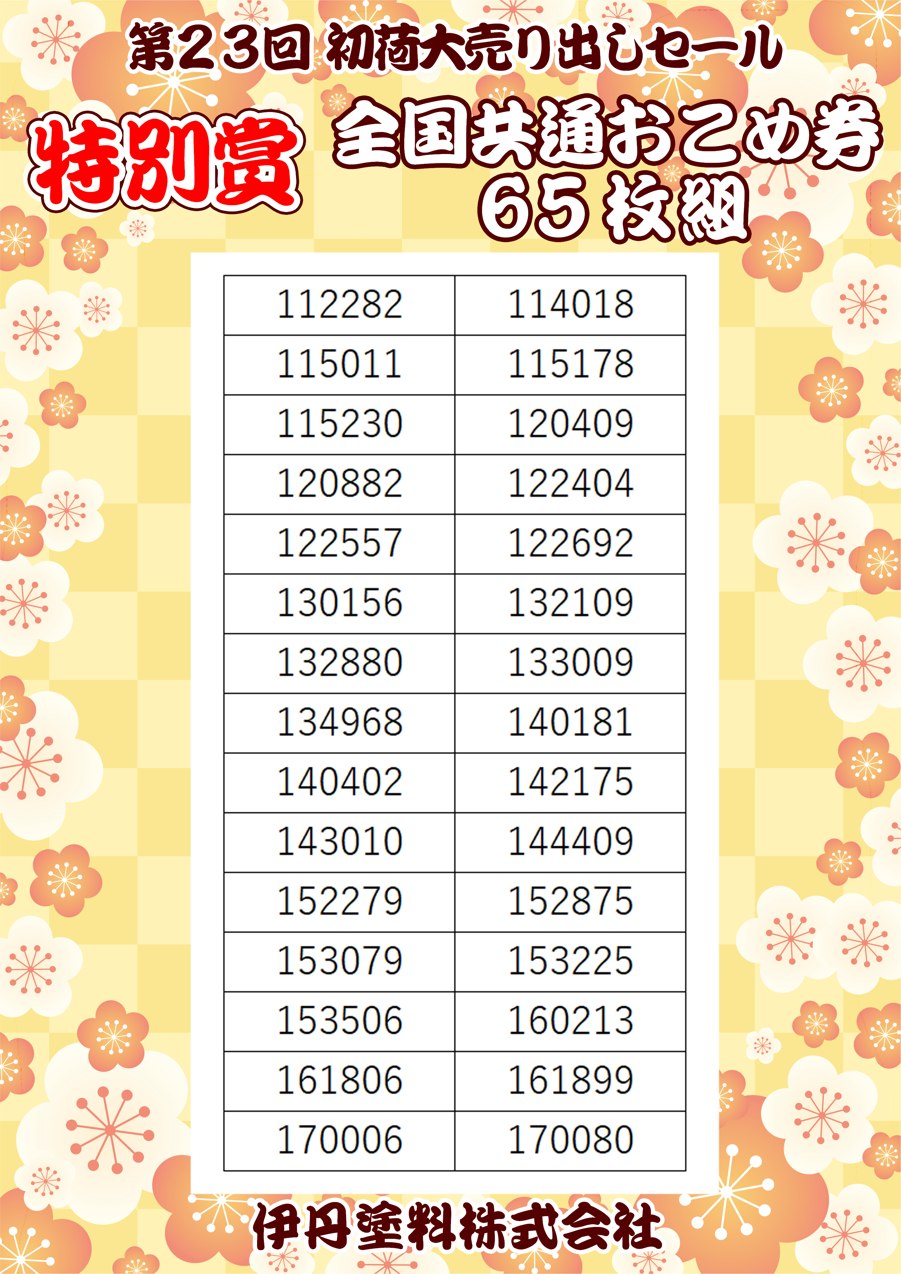 第23回 2026年 初荷大売出しセール 抽選会当選番号発表